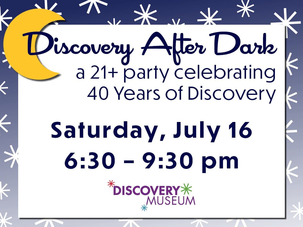 It's grown-up time at Discovery Museum! Come hang out and play in our outdoor and indoor spaces and enjoy a fun evening with live music, food, drinks, and friends. Advance tickets required Early Bird: $40 per person until July 1 General Admission: $50 per person July 1 - July 16 (or until sold out) Ticket […]