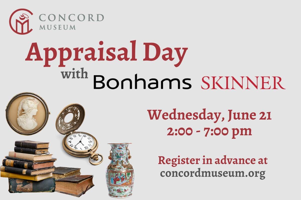 Do you have a family heirloom passed down through generations? Maybe a great yard sale item or flea market find that might be a treasure? Would you like to know what it is worth? Bring your special items to Bonhams Skinner appraisers Karen Keane, CEO, and Christopher Fox, Vice President, at the Concord Museum for […]