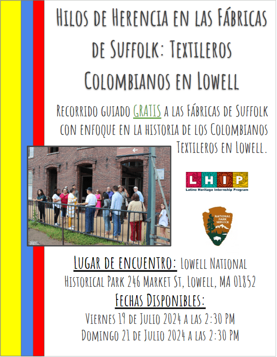 Revolución industrial, telares y ¿colombianos? ¿Sabías que la comunidad Colombia tiene una larga historia con la cuidad de Lowell? Acompáñanos los días 19 y 21 de Julio a las 2:30 en un recorrido a pie donde aprenderemos la historia de cómo han llegado tantos colombianos a la cuidad de Lowell y como ellos han convertido […]