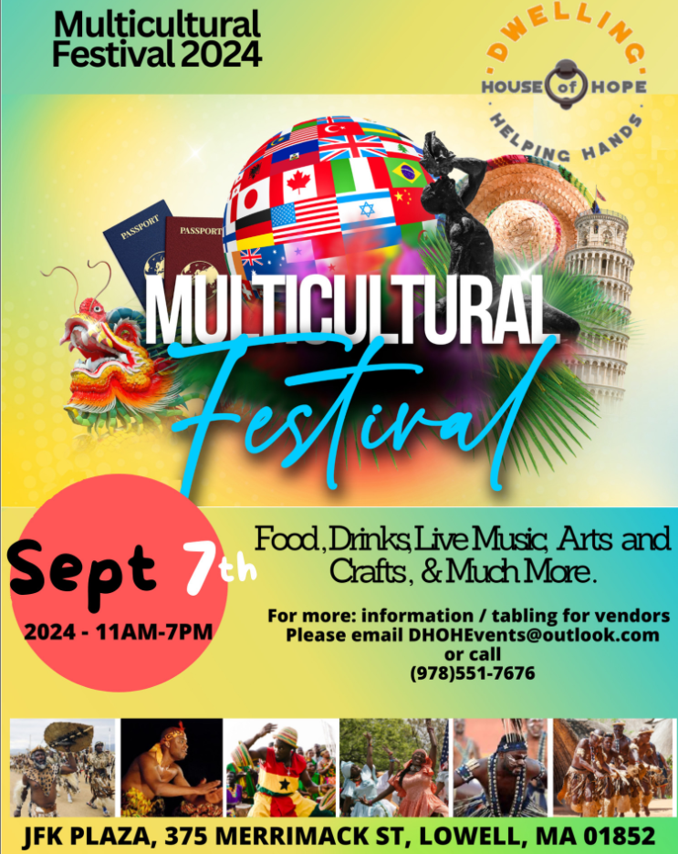 Visit JFK Plaza on Saturday, Sept 7th, for the Multicultural Festival from 11 AM – 7 PM! This festival features food, drinks, live music, arts and crafts, and more in celebration of the diverse international cultures that make up Lowell.