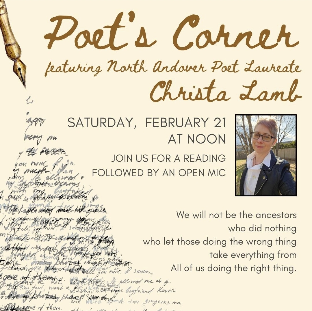 Poetry Corner is back, featuring the return of our newest North Andover Poet Laureate Christa Lamb. Christa April Lamb is a Massachusetts-based poet and writer whose work moves from close, […]