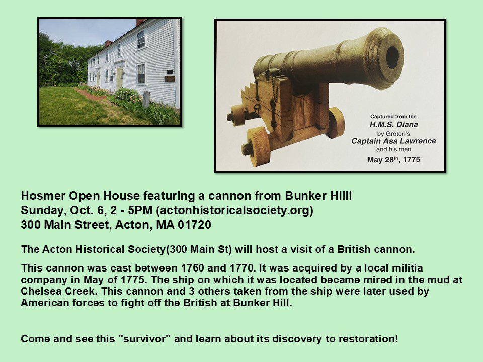 The Acton Historical Society will host a visit of a British cannon. This cannon was cast between 1760 and 1770. It was acquired by a local militia company in May of 1775. The ship on which it was located became mired in the mud at Chelsea Creek. This cannon and 3 others taken from the […]