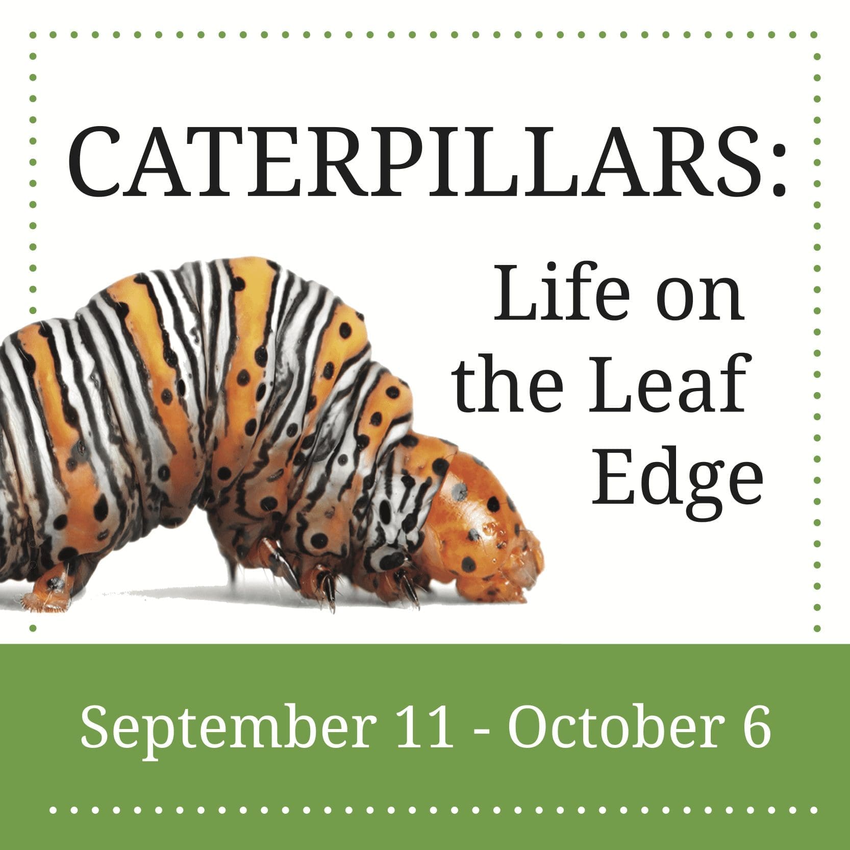 Explore a live caterpillar experience combined with hands-on, immersive activities inspired by these incredible and stunning local creatures. Live caterpillars are on view Wednesdays through Sundays only. Created in collaboration with Sam Jaffe, founder and educator from The Caterpillar Lab in Marlborough, NH.