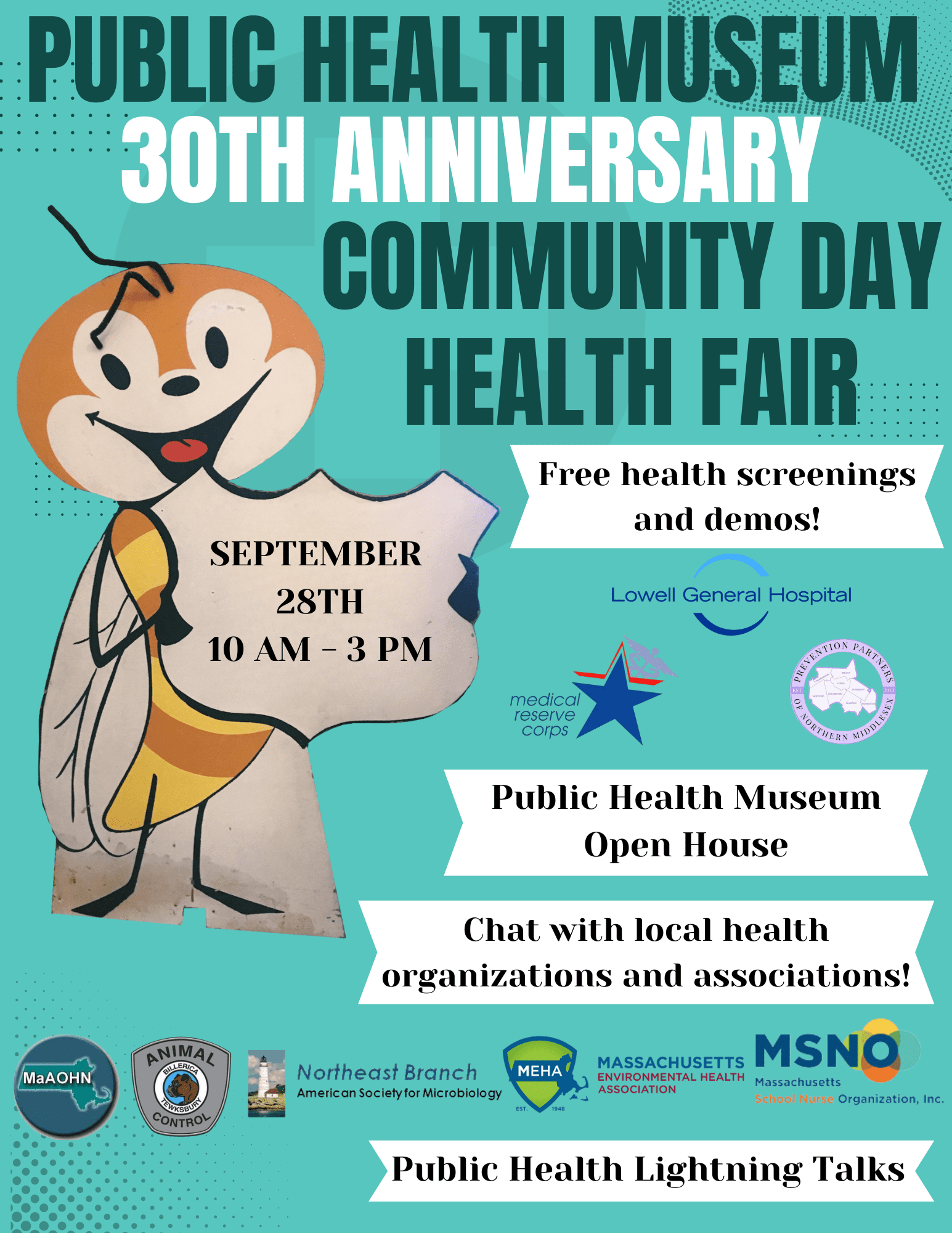 Celebrate the Public Health Museum's 30th Anniversary with a weekend of activities. On Saturday, September 28th, visit the museum at 365 East Street, Tewksbury, MA from 10AM-3PM for free health screenings, flu shots, mini-talks about Rabies, HIV/AIDS, Art as Healing, and more. The museum will be open for tours and we'll have groups such as […]