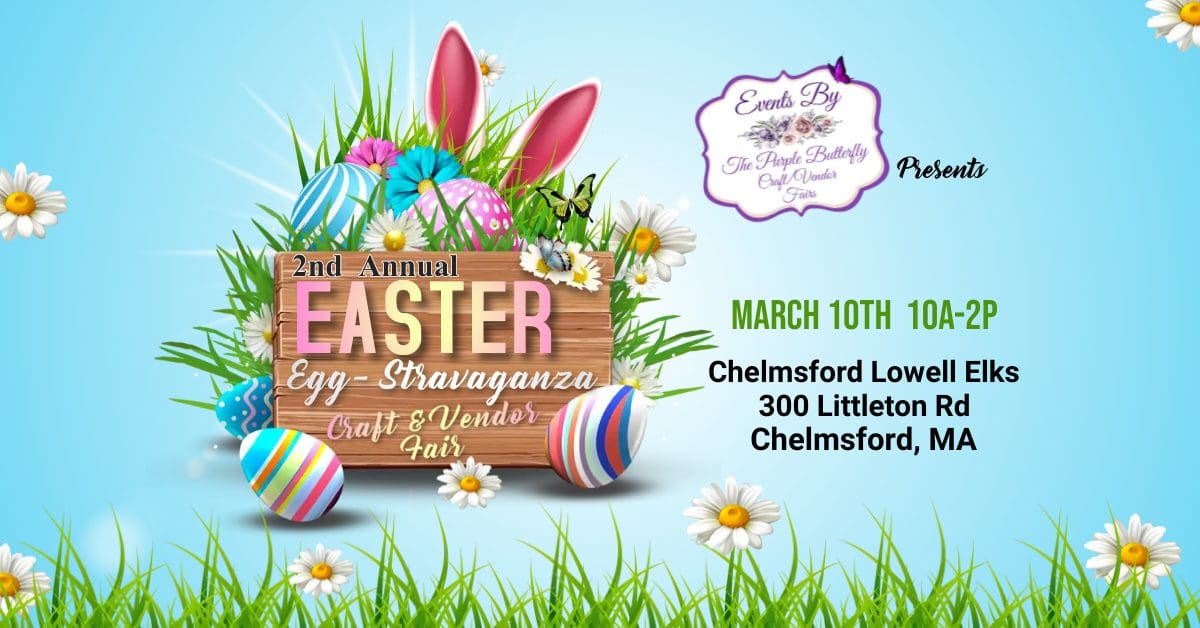 Hop on over to our Easter Egg-Stravaganza Craft & Vendor Fair March 10th 10a-2p Chelmsford Lowell Elks 300 Littleton Rd. Chelmsford MA 30 plus vendors Visit from the Easter Bunny Raffle Table Cash Bar Event Page: https://www.facebook.com/events/709973631102654