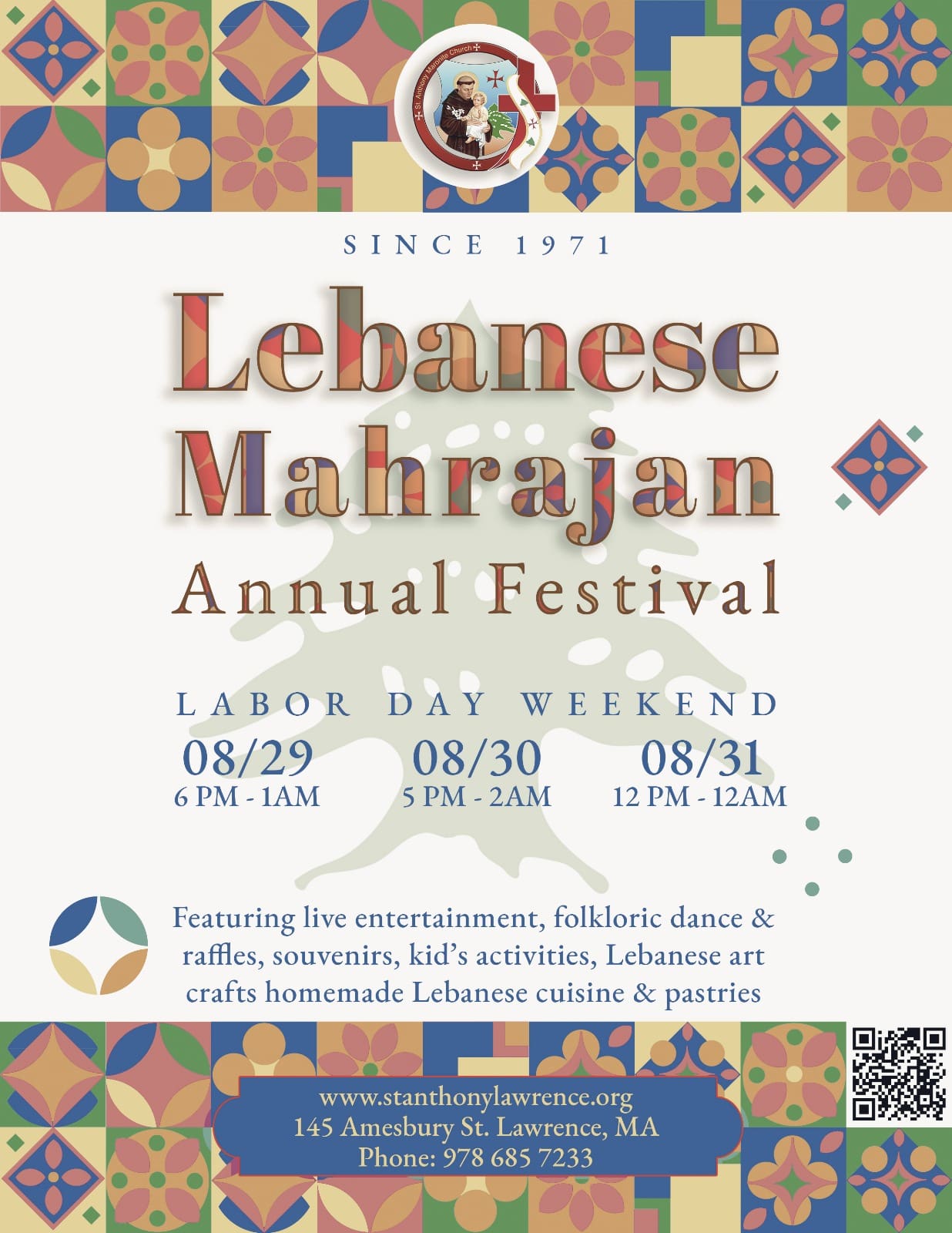Lawrence, MA — Saint Anthony Maronite Catholic Church is delighted to welcome one and all to the Saint Anthony Mahrajan Festival 2025, an exuberant celebration of Lebanese culture, community, and faith held over Labor Day Weekend. 🗓 Festival Dates and Hours: • Friday, August 29 – 6:00 PM to 1:00 AM • Saturday, August 30 […]