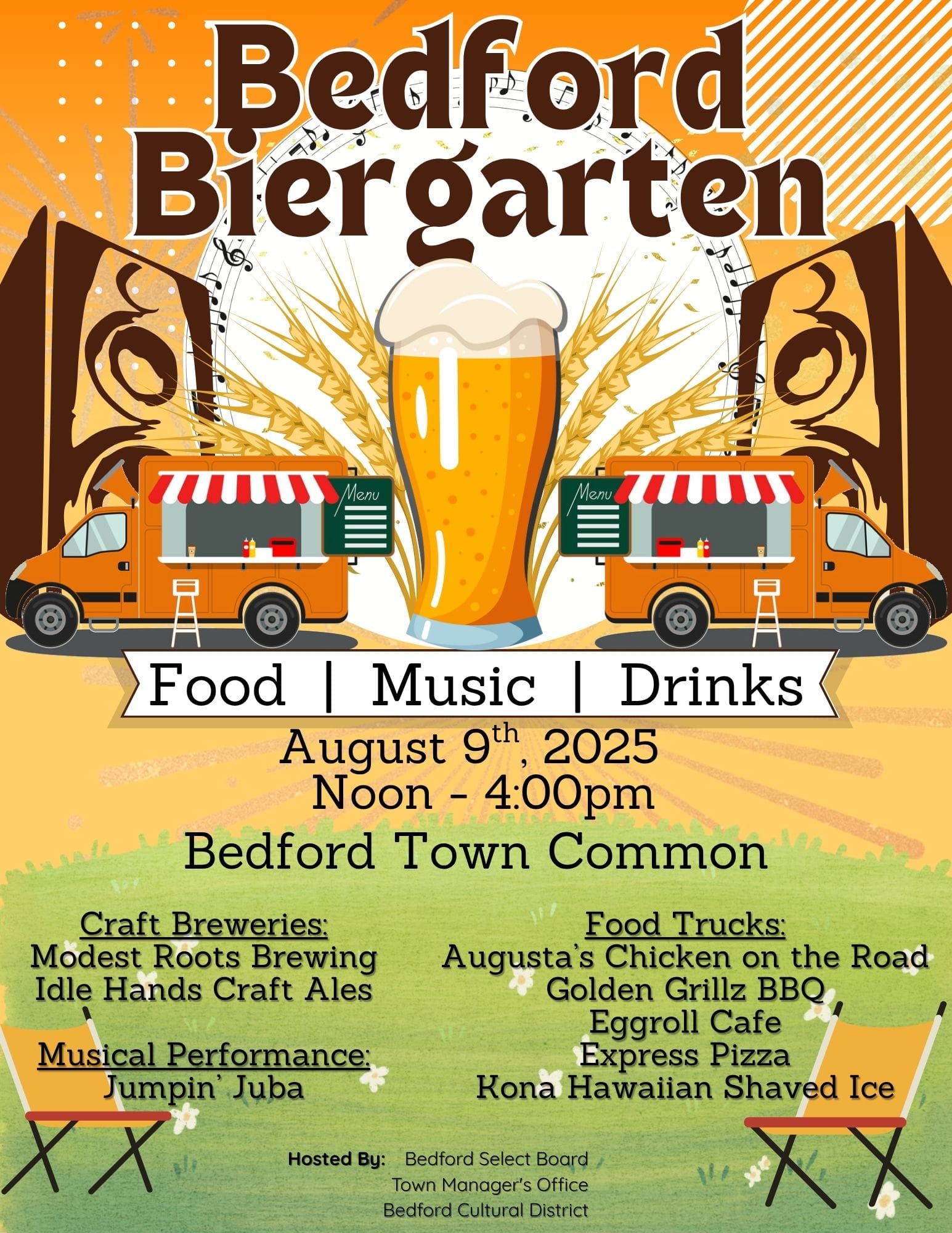 The Town of Bedford is looking forward to welcoming the community and our neighbors to the Bedford Summer Biergarten on Saturday, August 9th from noon-4:00pm. This free, family-friendly event will feature a German-inspired biergarten on the historic Town Common with two craft breweries, food trucks, live music, and lawn games. Craft Breweries: Modest Roots Brewing […]