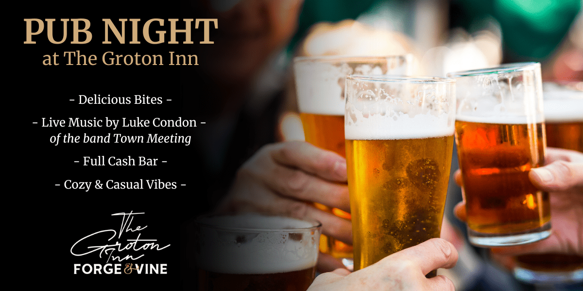 Join us for a fun and casual evening at The Groton Inn! Luke Condon from the band Town Meeting will be performing live, setting the perfect atmosphere for a cozy pub night. We’ve heard your requests for a laid-back spot in town to unwind, and we’re delivering with delicious bites, a full cash bar, and […]