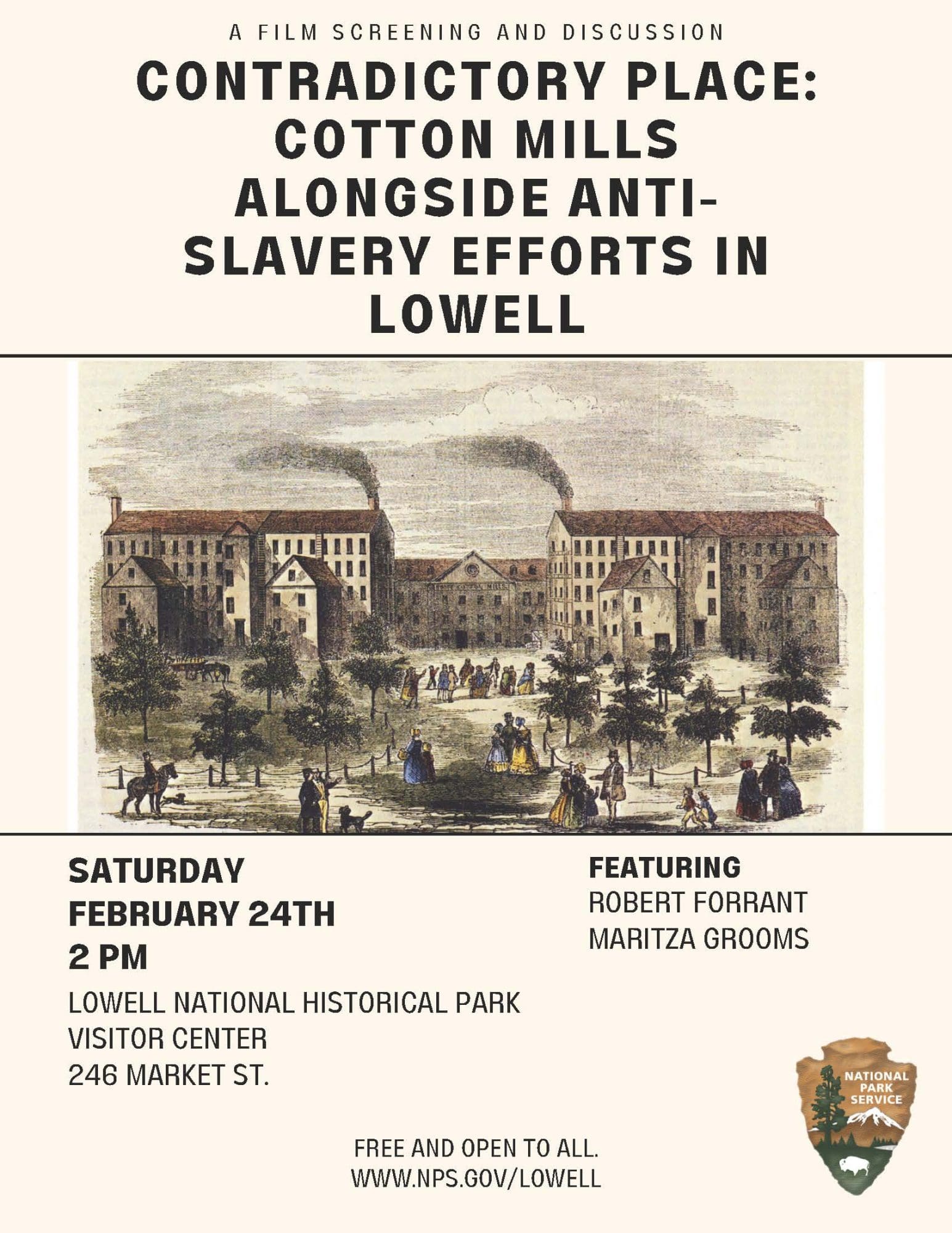 Join us for a screening of the documentary film ‘Contradictory Place’: Cotton Mills Alongside Anti-Slavery Efforts in Lowell Massachusetts featuring Prof. Robert Forrant of the University of Massachusetts Lowell and Public Historian Maritza Grooms. The film describes the extraordinary anti-slavery efforts taking place in the mid-19th century in Lowell. Forrant and Grooms visit the sites […]