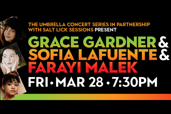The Umbrella Arts Center is excited to expand The Umbrella Concert Series to include casual and intimate shows spotlighting some of your future-favorite musical acts who are up-and-coming through the Salt Lick Incubator program. Up next: Grace Gardner, Sofia Lafuente, and Farayi Malek! Grace Gardner Raised on the outskirts of a Texas city and now […]