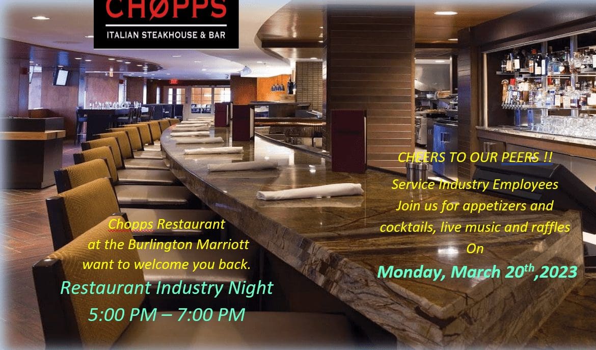 Cheers to our Peers! Service industry employees, join us for appetizers and cocktails, live music and raffles.
