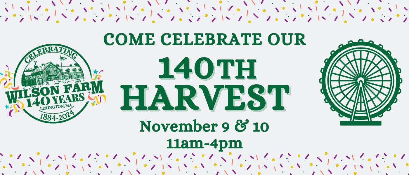 Come celebrate our 140th Harvest Nov 9 & 10 11am-4pm. Hayrides, Food Samples, Carnival Games, Birthday Cake and Ferris Wheel Rides!