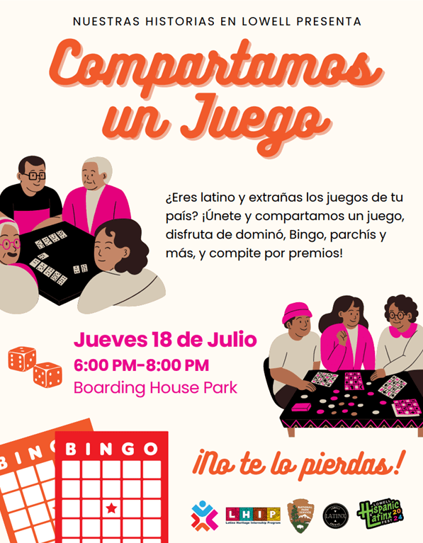 Este evento está diseñado para reunir a la comunidad latina y a todos los curiosos interesados en disfrutar de una noche de juegos clásicos como dominó, parchís, bingo y mucho más. Fecha: 18 de julio Hora: 6:00 PM - 8:00 PM Lugar: 40 French St. Lowell, MA 01852 ¡Trae a tu familia para jugar una […]