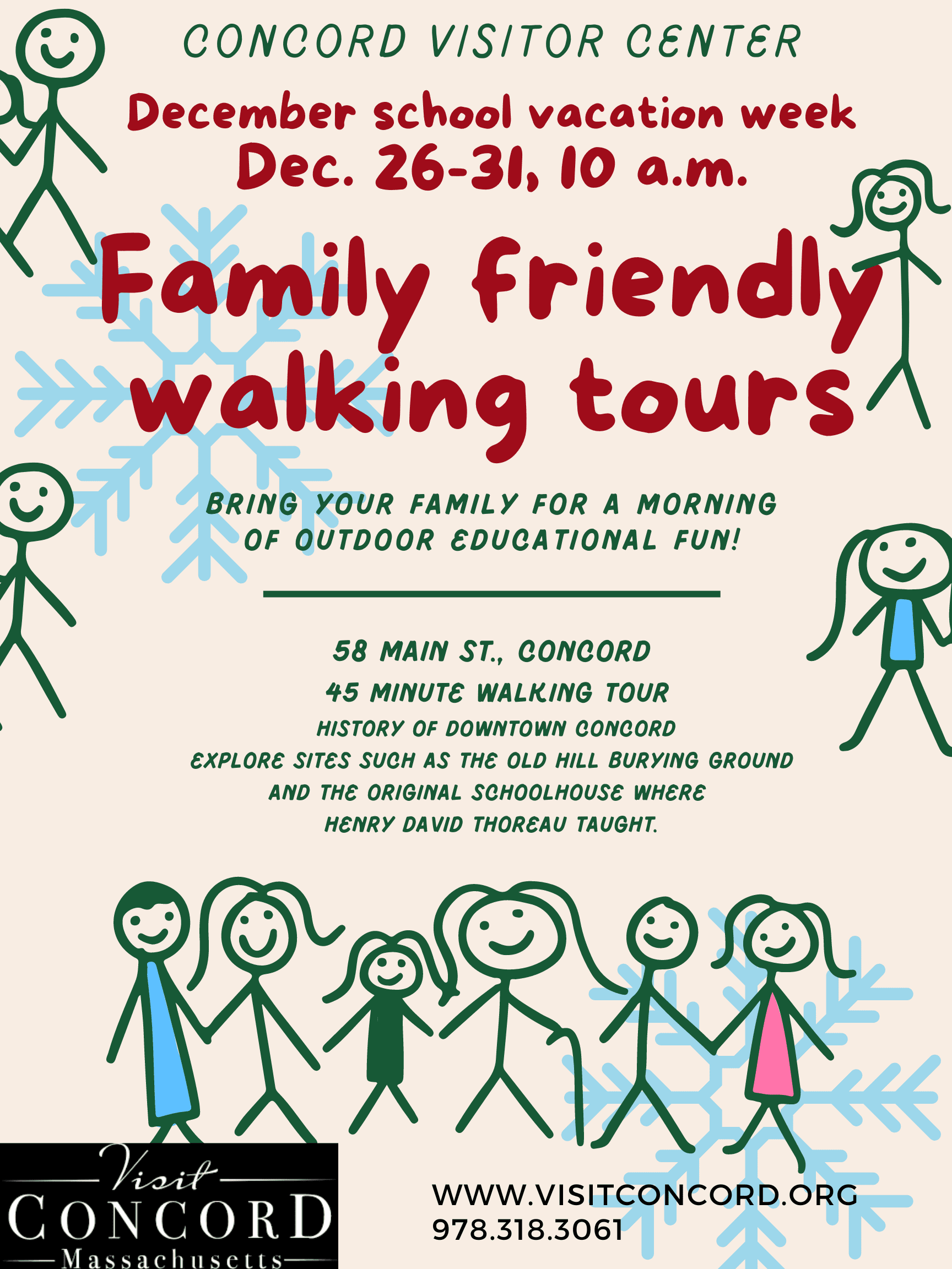Family & Children’s Walking Tour of Concord Concord 101 Walking Tour This engaging 45 minute walking tour is designed to make the history of Downtown Concord come alive for elementary-aged children. Learn about everything from the indigenous people who populated Concord to a notorious bank robbery on the Milldam. We will explore sites such as […]