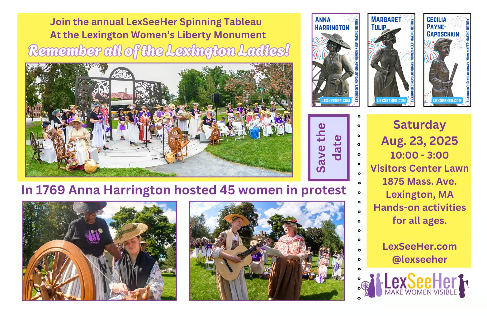 LexSeeHer spotlights revolutionary Lexington women who participated in Anna Harrington’s 1769 Spinning Protest. All ages & free activities include textile arts (knitting, crochet, ribbon work, friendship bracelets, spinning, weaving, mending, and more). Live music, community SingAlong, and formal program at 1:00 and 1:30 to re-enact Anna’s protest and honor the 2025 Women’s Visibility Banner Honorees. […]