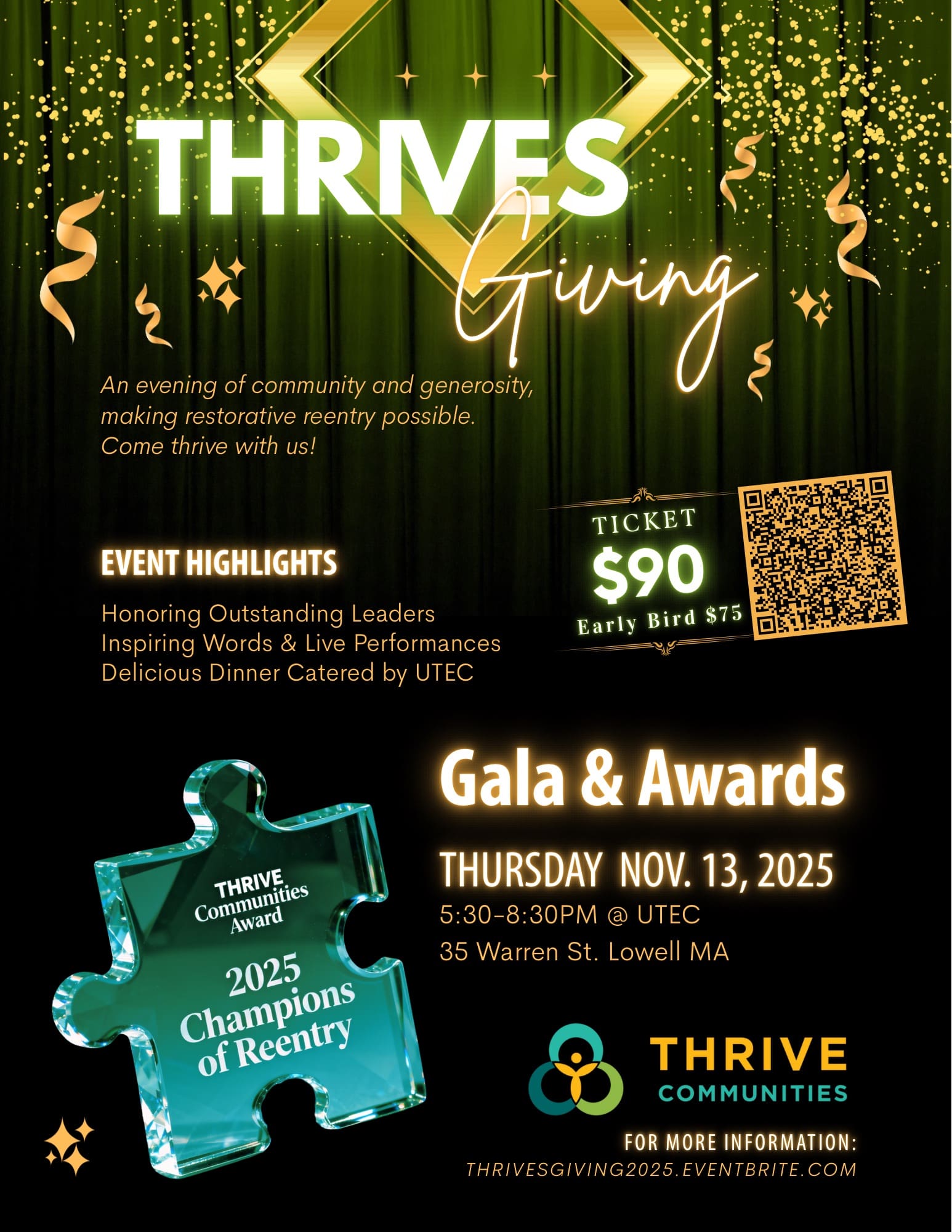 AN EVENING of COMMUNITY & GENEROSITY to MAKE RESTORATIVE REENTRY POSSIBLE!! Join us for an evening of celebration, community awards & generosity! Thrivesgiving2025.eventbrite.com Schedule for the evening includes: Mocktail Hour with Social Stations: Holiday Card Writing for incarcerated people, Take Action station for social change, Volunteer Information, and more! Dinner: Tasty autumn bowls by UTEC […] |