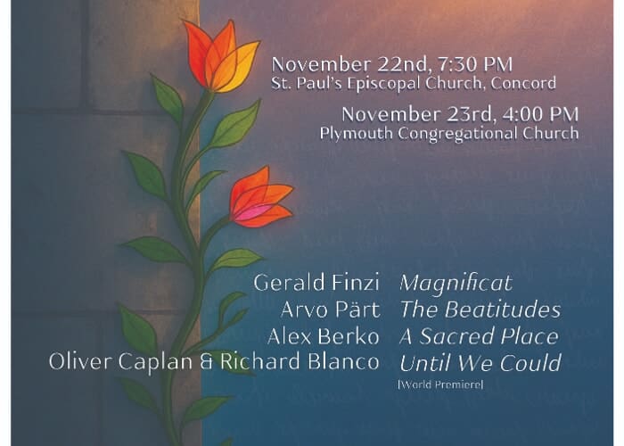 The esteemed New Hampshire Master Chorale presents spiritual music for a secular age in a two-concert series in Concord on November 22 and Plymouth on November 23. The program features the premiere of “Until We Could,” Boston composer Oliver Caplan’s setting of a Richard Blanco’s poem that commemorates the 10th anniversary of the Supreme Court’s […]