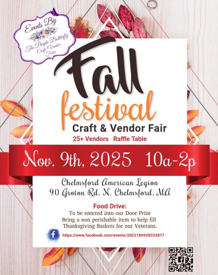 Get ready for an exciting shopping spree on November 9th at the Chelmsford American Legion! Our annual Fall Festival Craft & Vendor Fair will feature numerous locals offering a wide variety of unique gifts, decorations, and other must-haves. By supporting these small businesses, you'll be able to cross off everything on your shopping list while […]